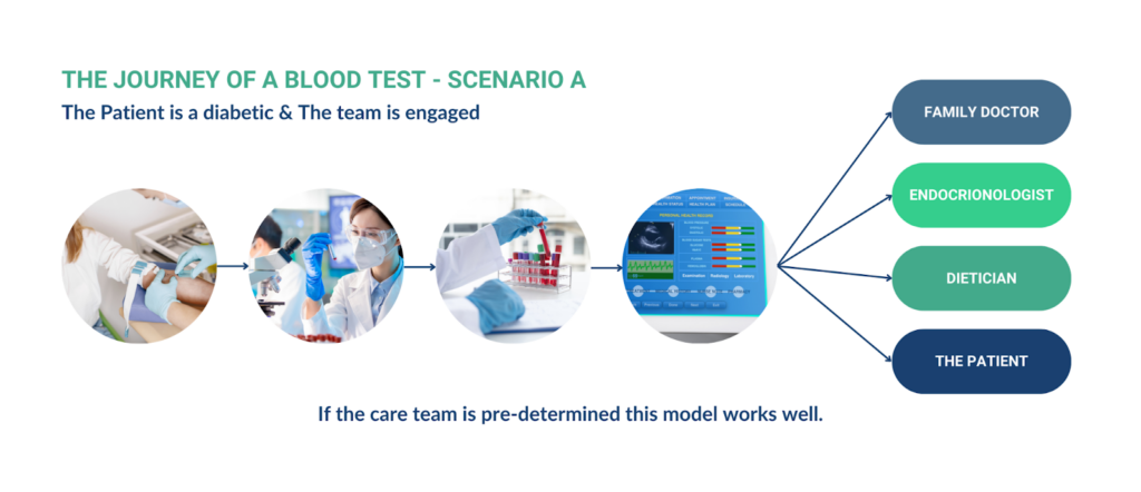 A 68-year-old male patient, Arnu, presented with symptoms that pointed to Diabetes. His family doctor wanted to investigate given the symptoms and his family history. Sure enough, her assumptions were correct. She now needs to engage a care team to look after Arnu before his situation worsens as his Diabetes causes more damage to other organs and his quality of life deteriorates. However, in this scenario, the flow of information from the laboratory is not seamless and the doctor has to revert to writing a letter and include the blood results manually for the care team to review. Apart from the extra effort required by this doctor to communicate the results and the diagnosis, the results are not in a format that can be easily searched, plotted, or extracted by the other clinicians because they are receiving it in the body of a letter.